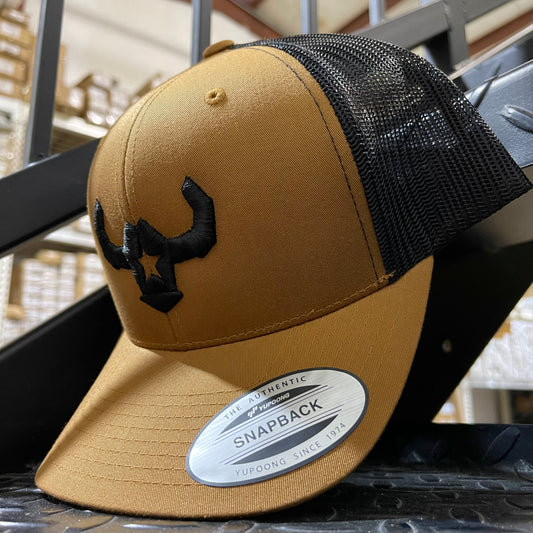Camel and Black Color 3D Bull Retro Trucker Mesh Cap