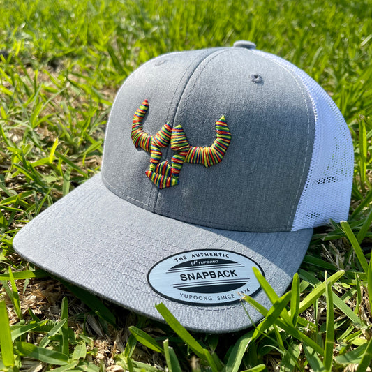 Light Heather Grey 3D Multi-Color Bull Retro Trucker Mesh Cap