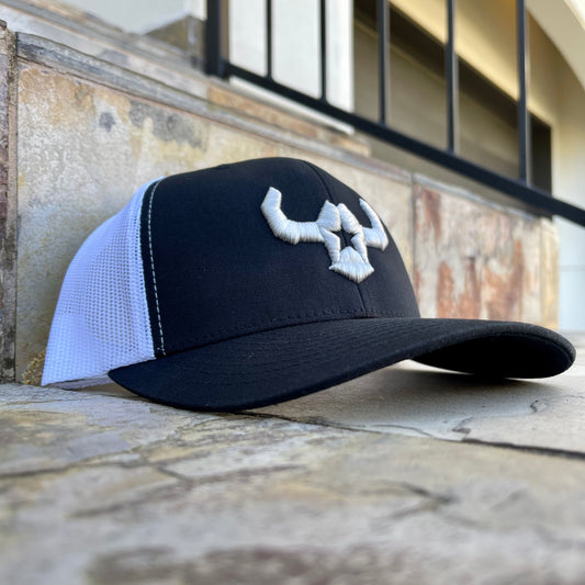 Black and White Hat With Silver 3D Bull Retro Trucker Mesh Cap