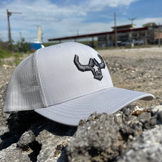Light Grey Hat With 3D Bull Logo Retro Trucker Mesh Cap