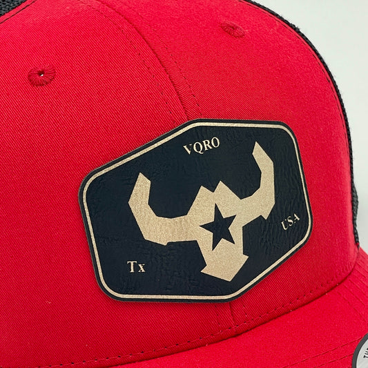 Red and Black Leatherette Patch Original Bull Retro Trucker Mesh Cap